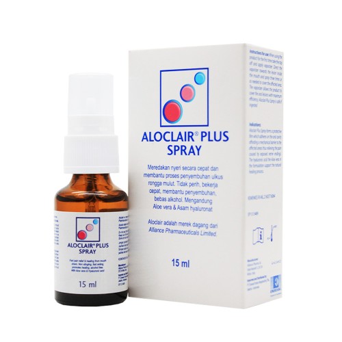 ALOCLAIR PLUS SPRAY 15 ML merupakan obat yang membentuk suatu film pelindung yang akan menempel pada rongga mulut dan menjadikannya suatu barier mekanik pada daerah yang sakit sehingga akan menghilangkan nyeri yang diakibatkan paparan terhadap ujung persarafan. Kandungan asam hialuronat dan aloe vera mendukung terjadinya proses penyembuhan yang alami dari jaringan yang mengalami kerusakan.